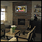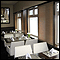 integrated monitors. The Front desk separates the Lobby from the Restaurant